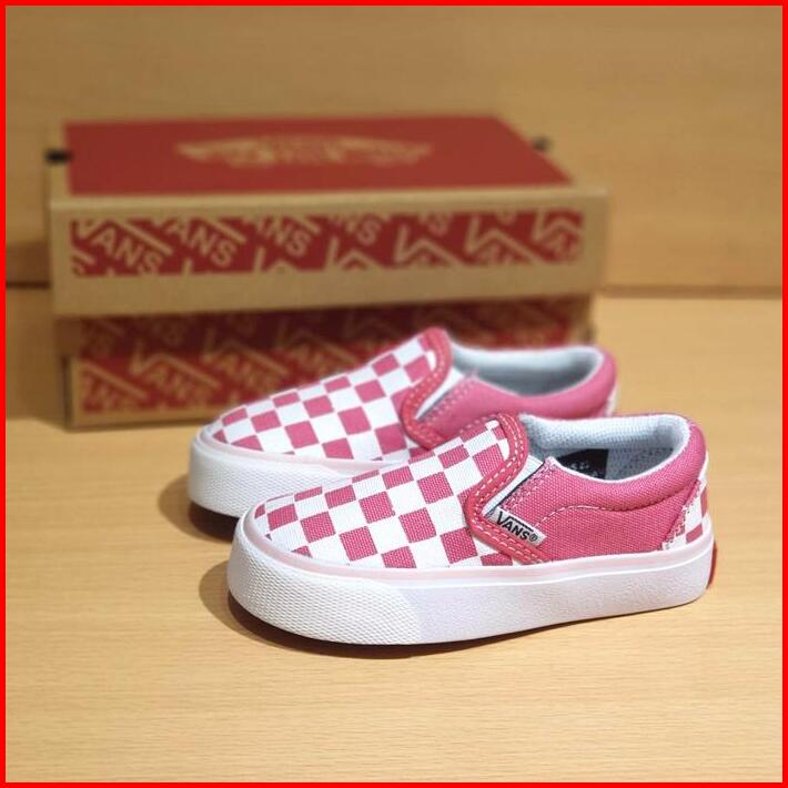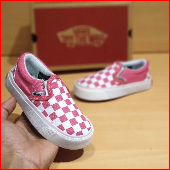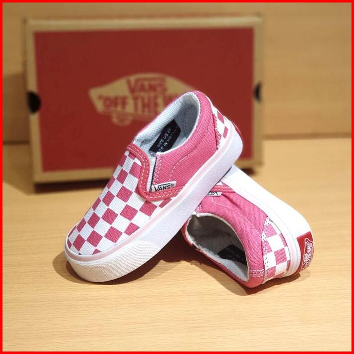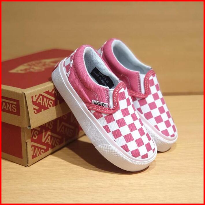 Sepatu Anak Perempuan Cewek Vans Slip On Catur Pink Casual Kids