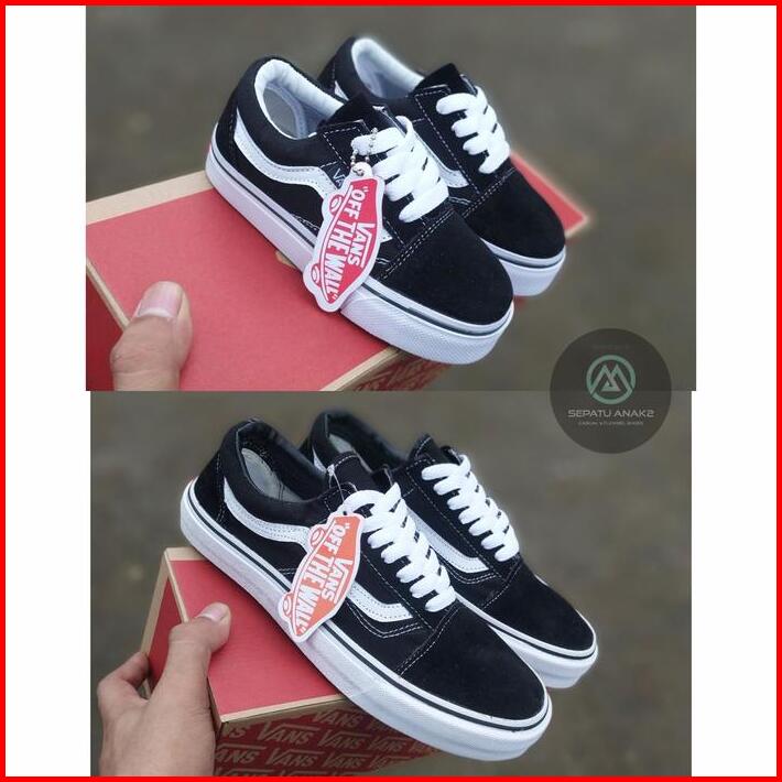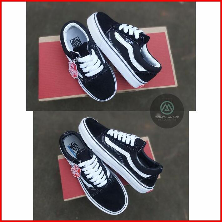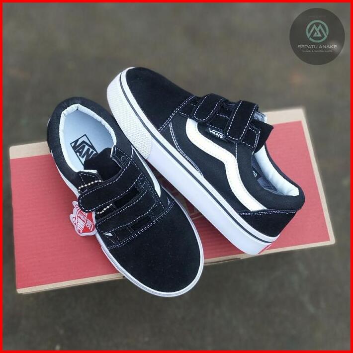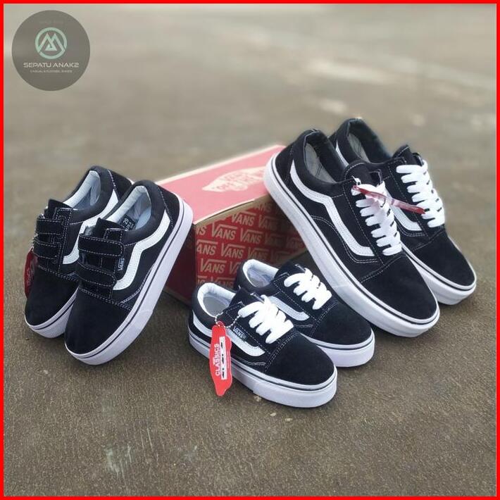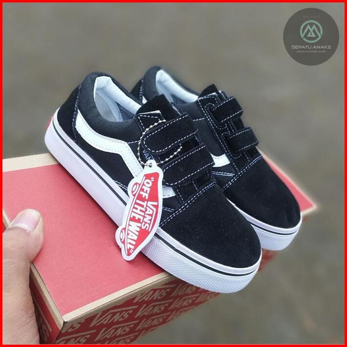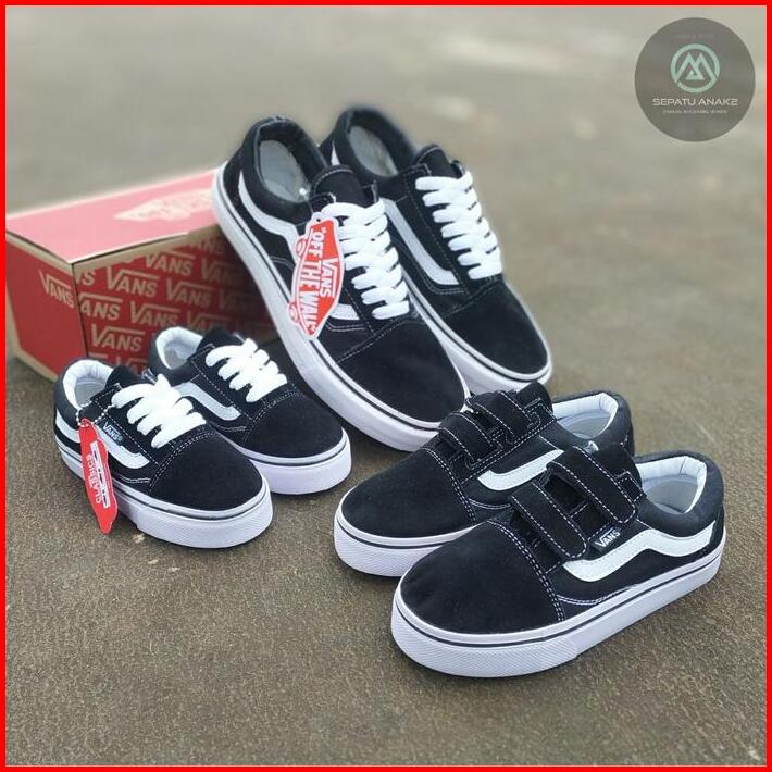 Sepatu Anak Vans Oldskool Klasik Laki Laki Perempuan Hitam Perekat Dan Tali