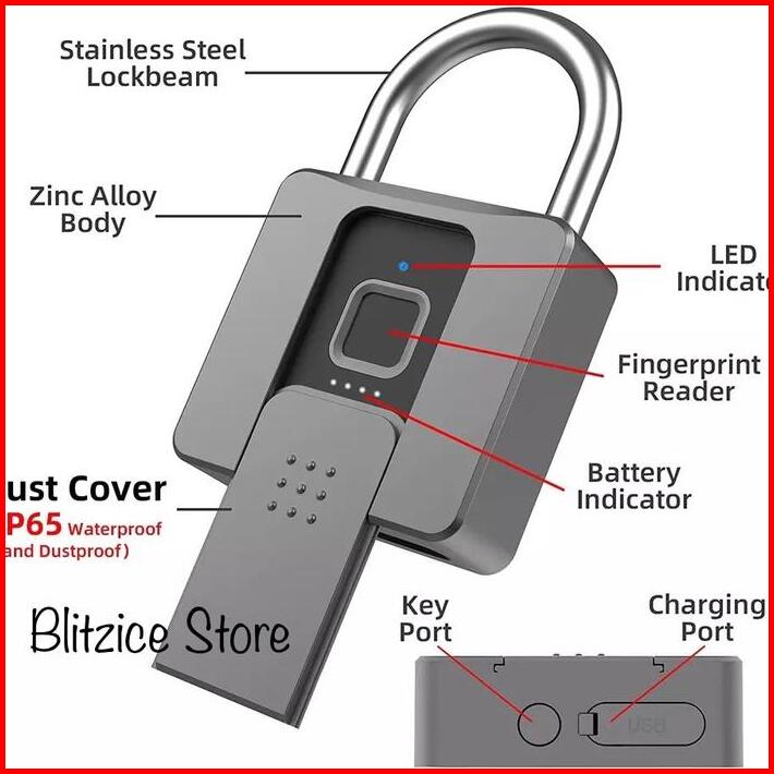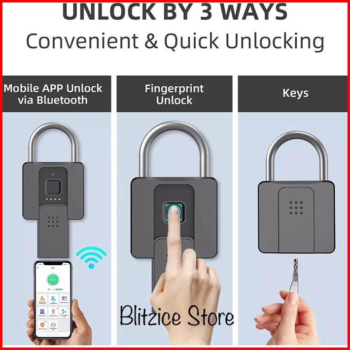 Fingerprint Padlock Key 3 In 1 Gembok Sidik Jari Kunci Smart Lock