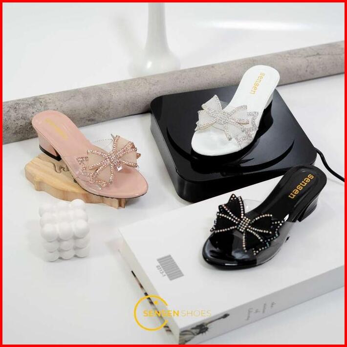 Sensen Sabrina Sepatu Pesta Anak Perempuan Hak 3cm Pita Glossy Size 26-35 Sol Karet Anti Slip