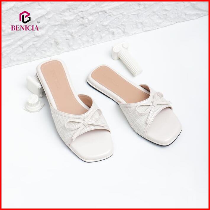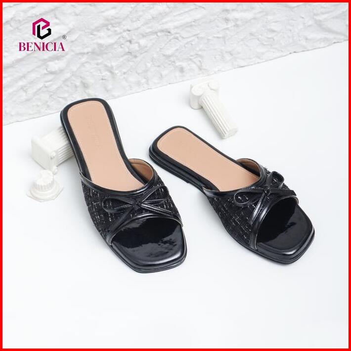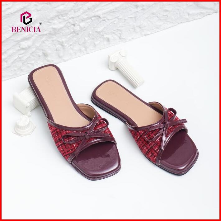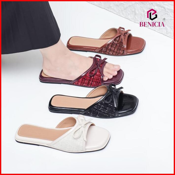Benicia Aluna Sendal Selop Wanita Teplek Karet Kekinian Cewek Bahan Canvas Coklat Hitam Sandal Terbaru