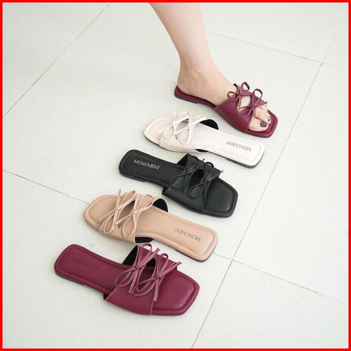 Monument Sandal Flat Wanita Selop Sendal Teplek Model Kasual Tali Pita Elegan Bantalan Empuk Layla-01 Tersedia Size 37-4