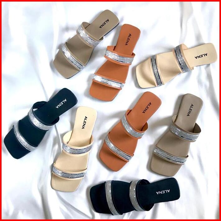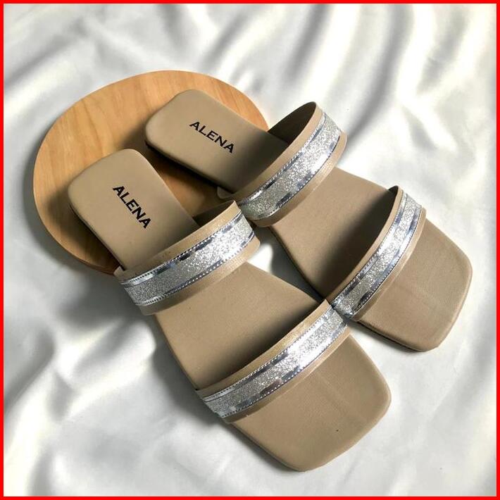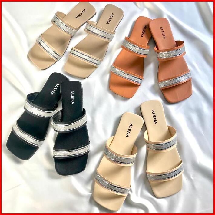 Monument Sendal Flat Wanita Model Tali Kilap C-1 Sandal Teplek Wanita Simple Kasual Tersedia Size 37-40