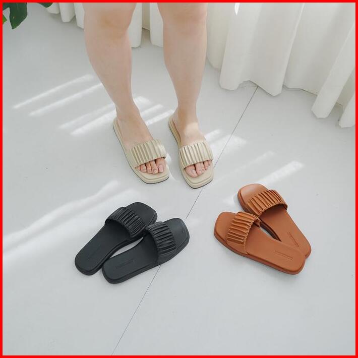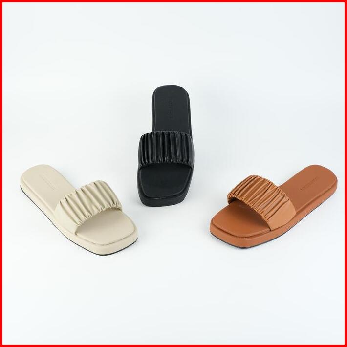 Monument Sendal Selop Wanita Kekinian Slide Cewek Mita-03 Sandal Flat Selop Platform Tali Kerut Tersedia Size 37-40 Anti