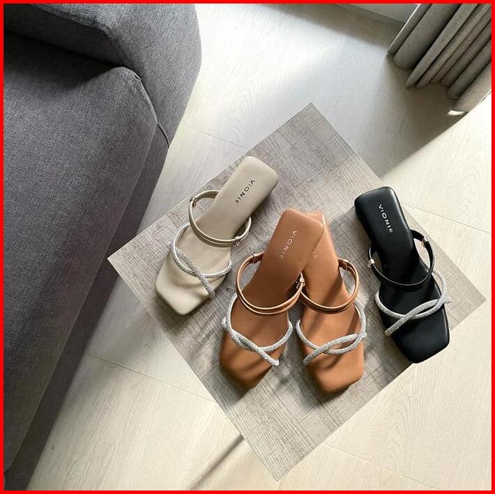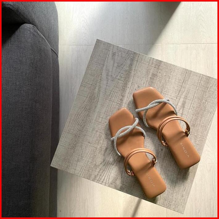 Monument Sandal Hak Wanita 2cm Selop Tali Kilap Sendal Heels Bantalan Injakan Empuk Amora-02 Tersedia Size 37-40