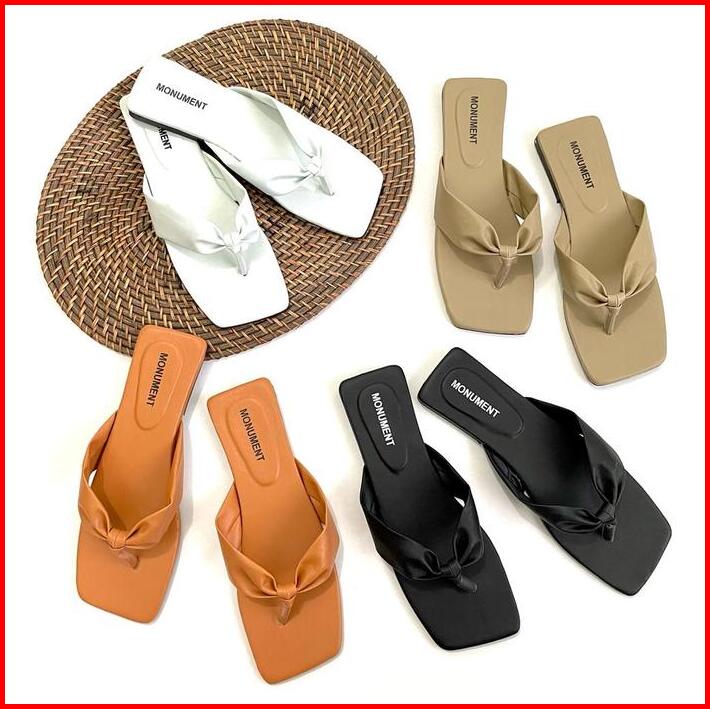 Monument Sandal Flat Wanita Dengan Model Tali Jepit Kerut T-7 Sendal Teplek Wanita Simple Kasual Tersedia Size 37-40