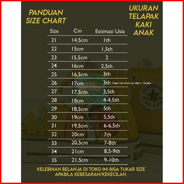 Sepatu Anak Converse All Star Tom Jerry Yellow 26-35 Usia Tk Sd