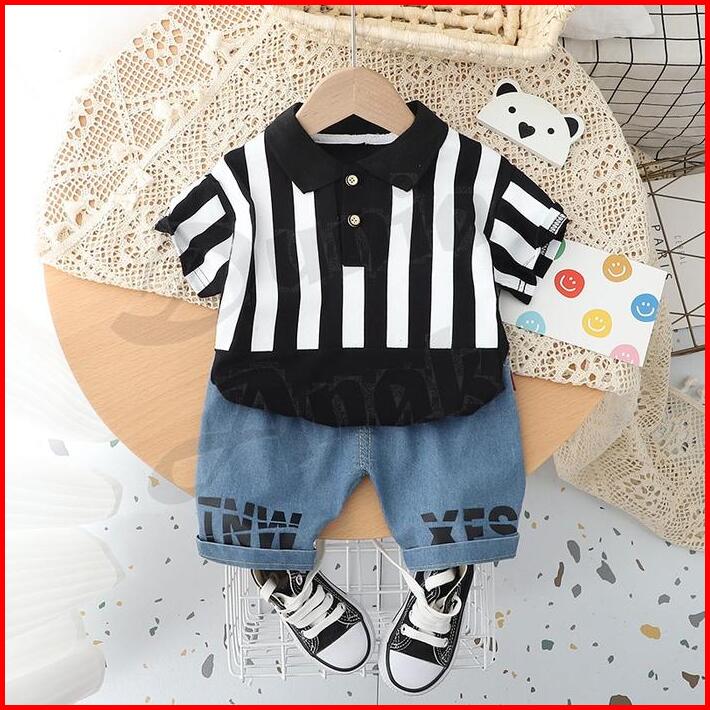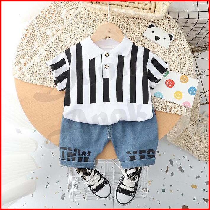 Setelan Baju Kaos Lengan Pendek Anak Laki Laki Umur 0-4 Tahun