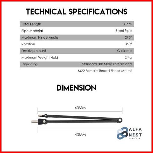 Fantech Ac902s Mic Boom Arm Stand Microphone Streaming Podcast
