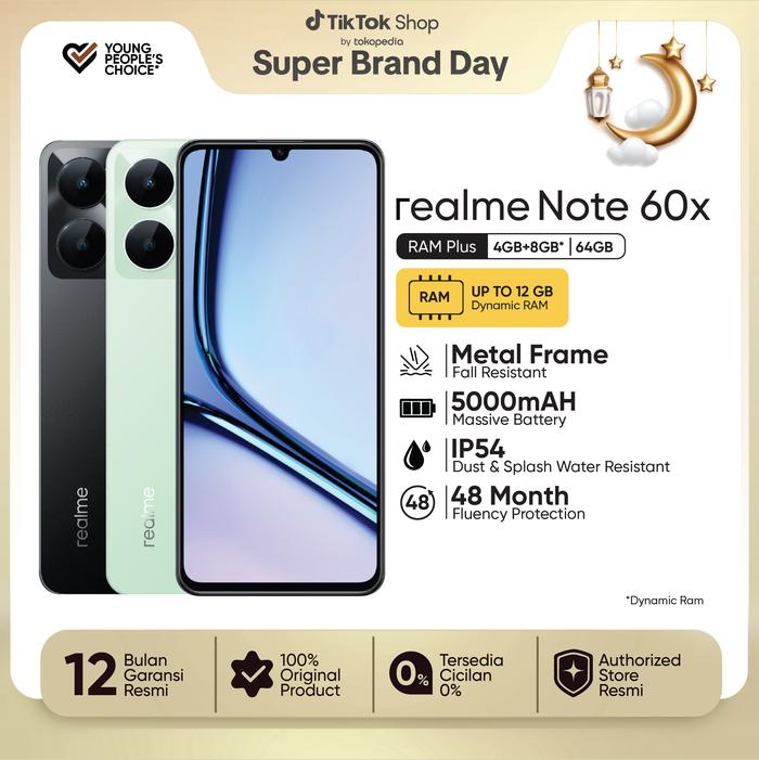 [Star]Official realme Note 60x 4GB+8GB*|64GB Rangka Metal Tahan Banting | Baterai Besar 5000mAh | Tahan Debu dan Percika