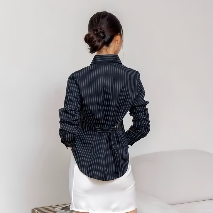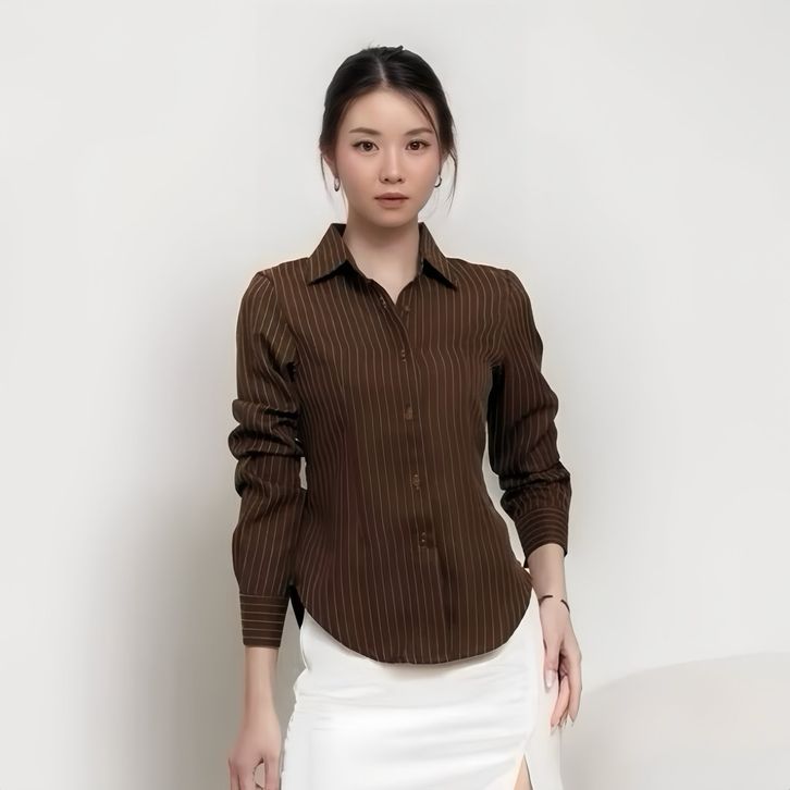 Kemeja Wanita Style Stripe Salur Luna Stripe Fitted Shirt-atasan Fit Body Basic Casual Best Seller