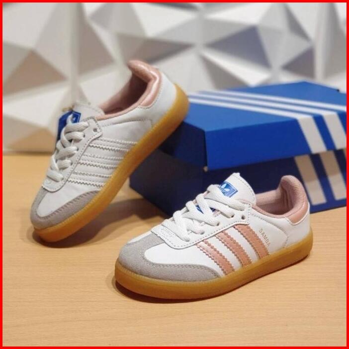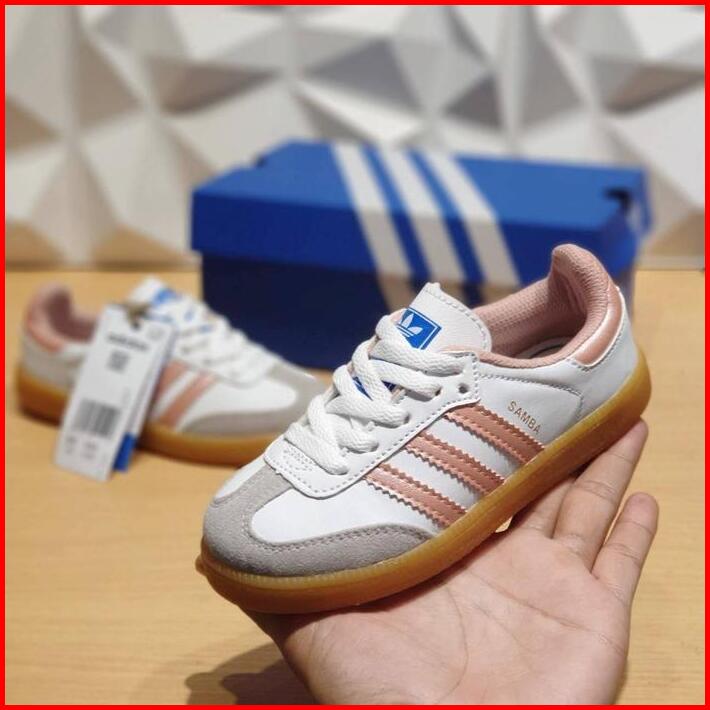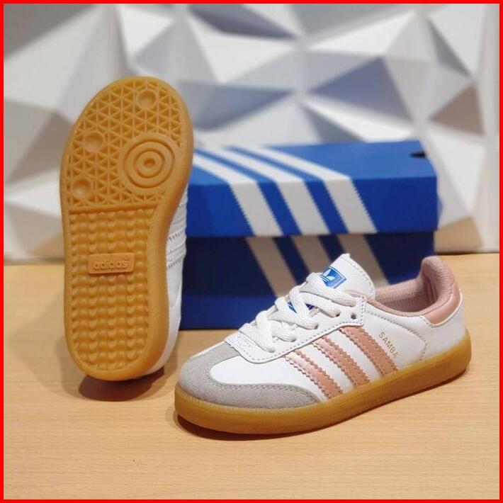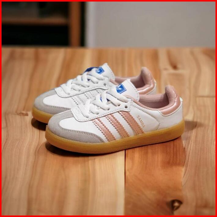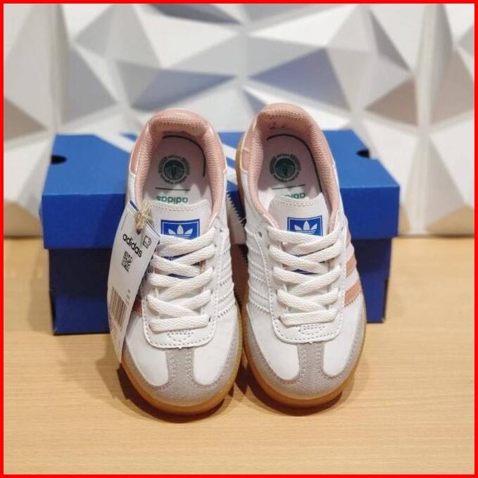 Sepatu Sneakers Anak Perempuan Adidas Samba White Peach Kasual Anak 21-30