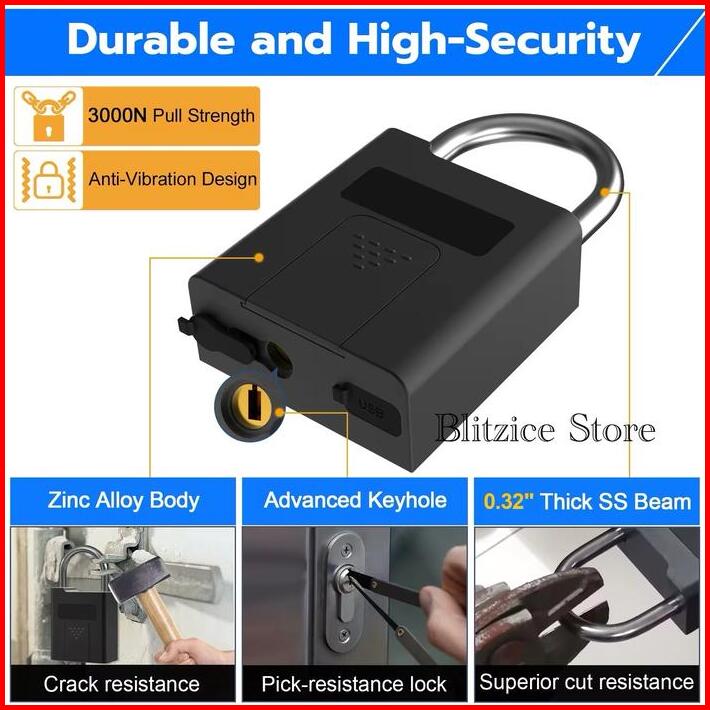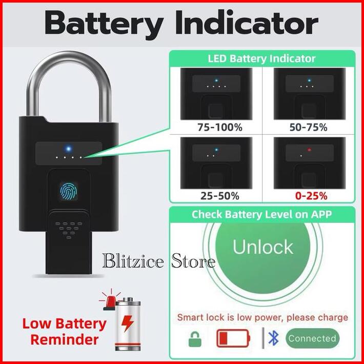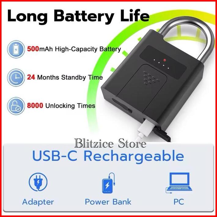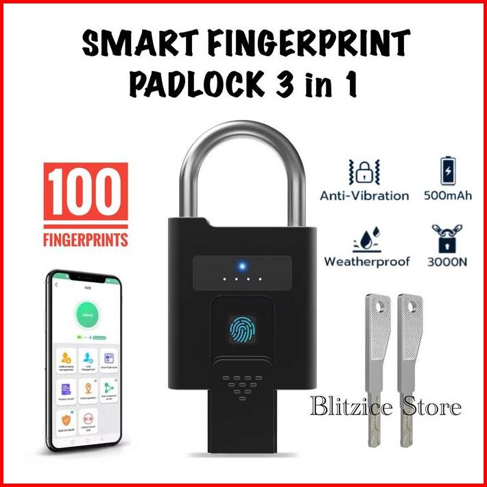 Fingerprint Padlock Key App 3 In 1 Smart Lock Gembok Sidik Jari Kunci Manual Waterproof Rechargeable Doorlock