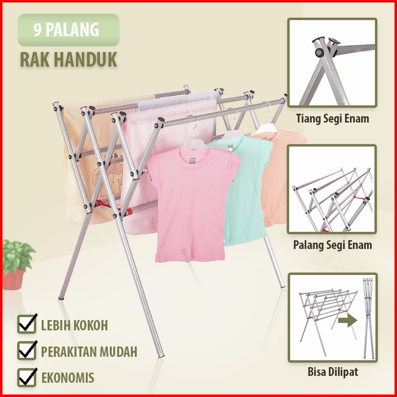 Jemuran Pakaian Rak Handuk Bisa Dilipat Bahan Galvalum