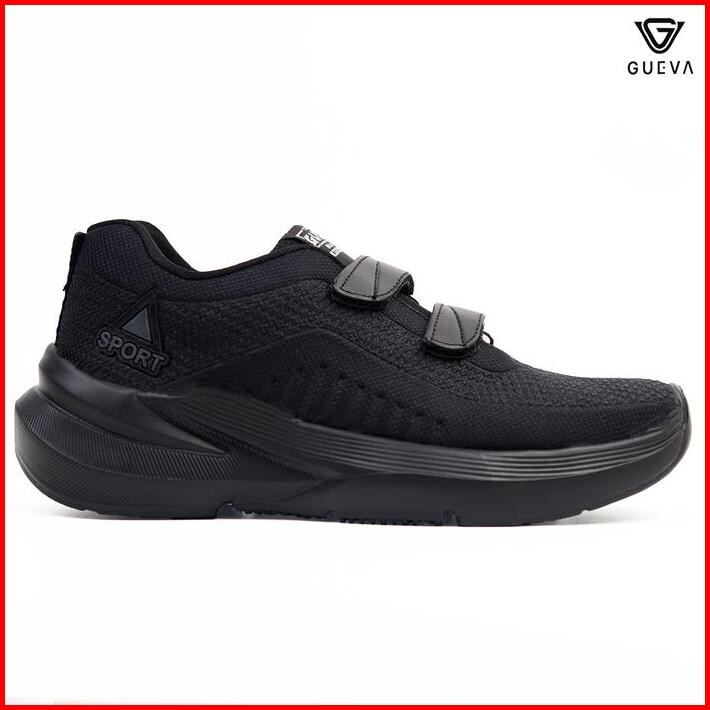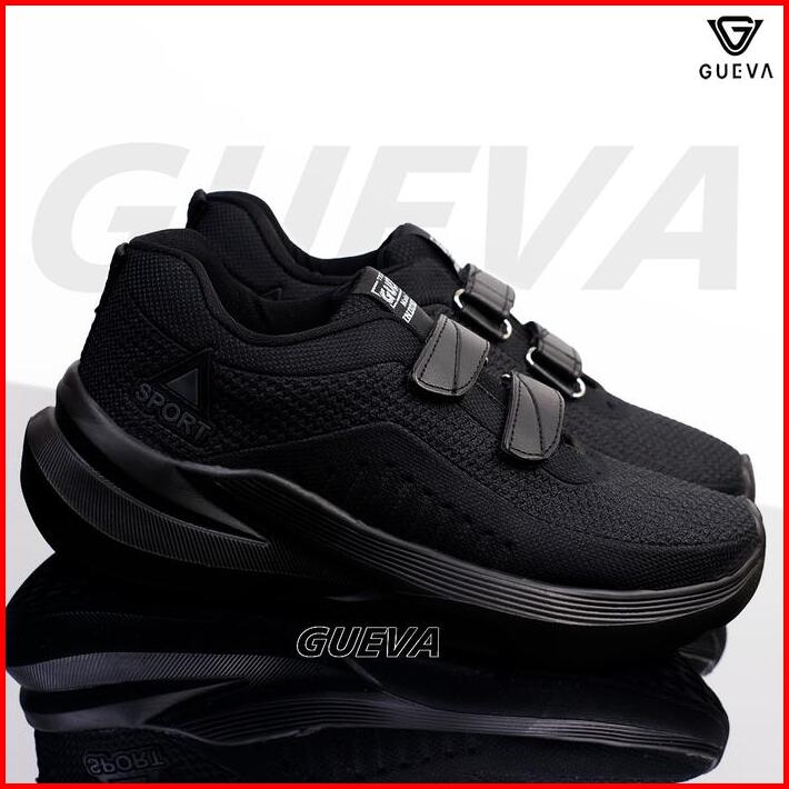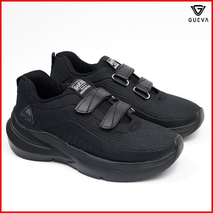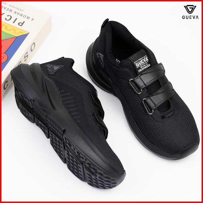 Gueva Sepatu Sekolah Anak Hitam Polos Sepatu Sneakers Velcro Strap 2 Size 31-37 Ringan Trainers