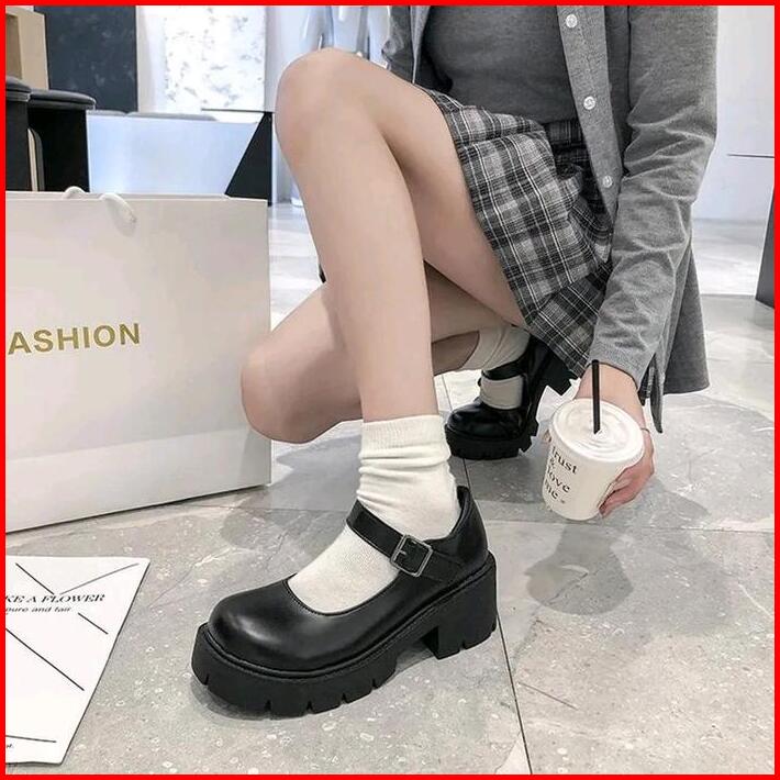 Sepatu Wanita Nara Platform Shoes Mary Janes Lolita Kasual Kerja Hitam
