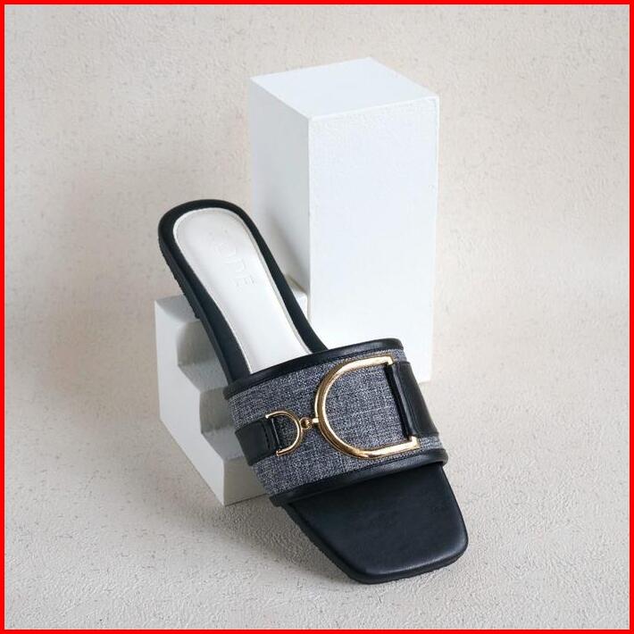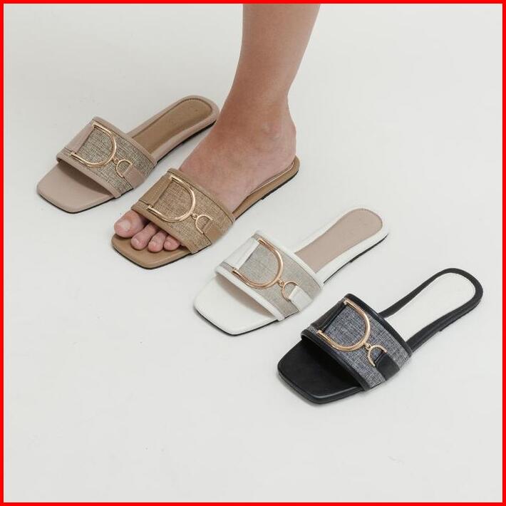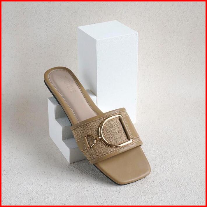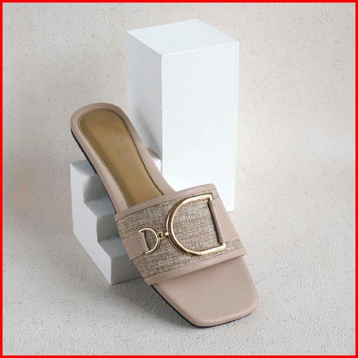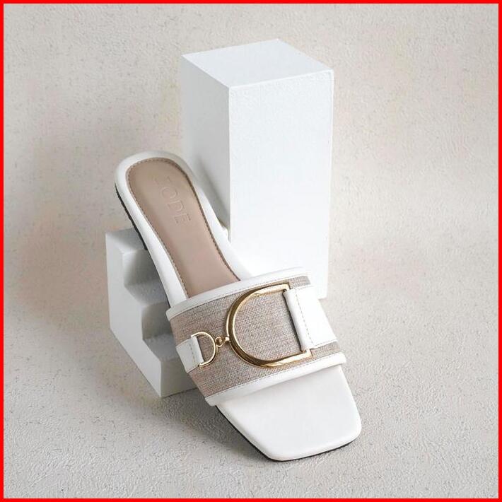 Zode Leen Flats Sandal Heels Wanita Black White Mocca Biscuit Sandal Wanita Lebaran