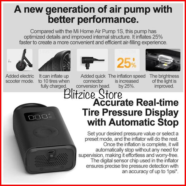Mijia Mi Portable Electric Air Compressor 2 2d Pompa Angin Ban Elektrik Tire