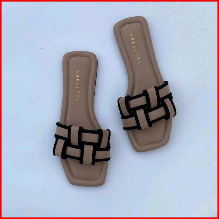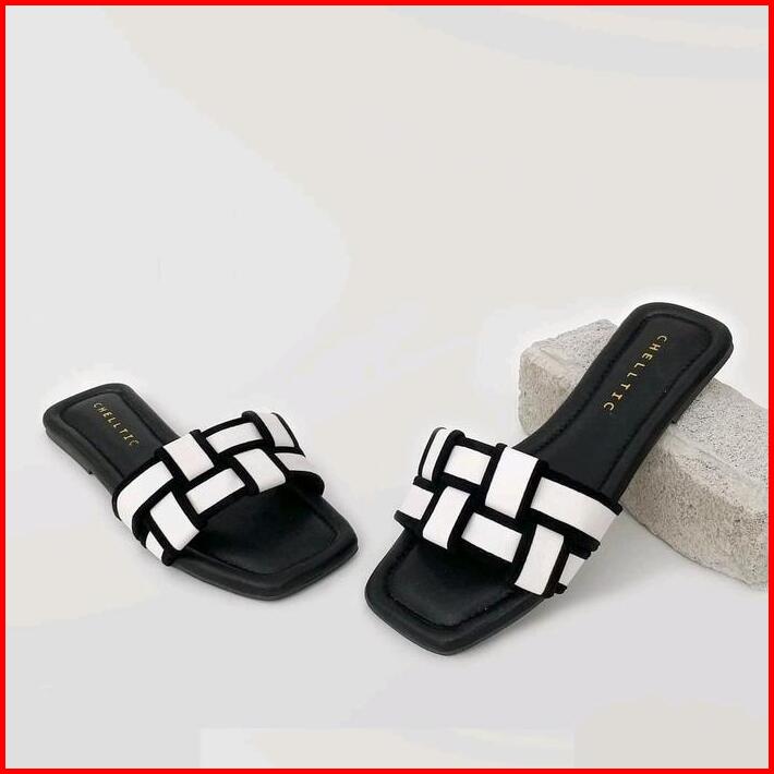 Nara Sandal Teplek Wanita Tali Anyam Sendal Flat Hak Datar Cewek Hitam