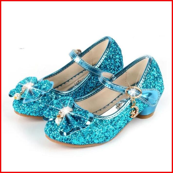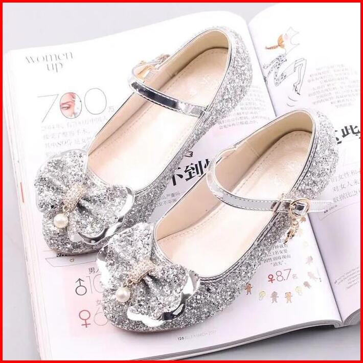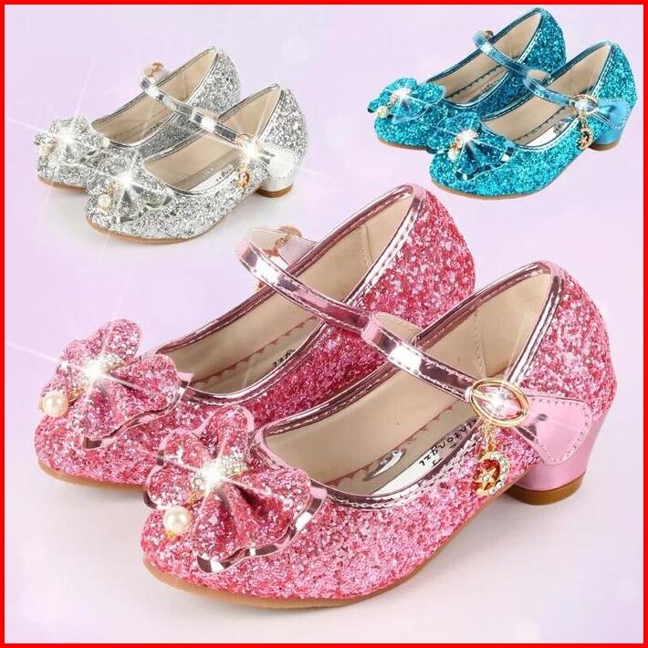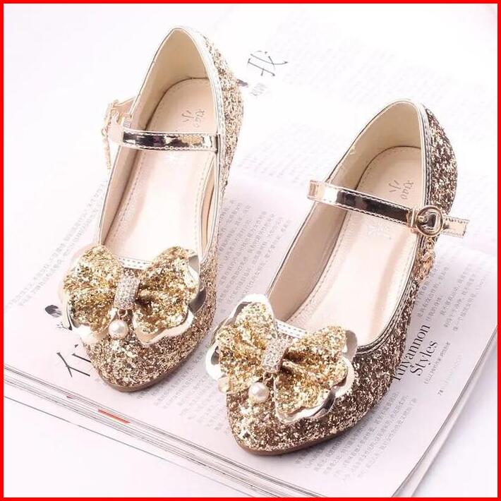 Sepatu Kulit Anak Perempuan Sepatu Anak Perempuan Hak Tinggi Simpul Kupu-kupu Sepatu Pesta Glitter Kasual Bunga Sepatu K