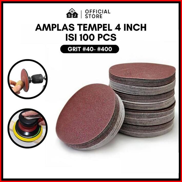 Isi 100 Pcs Amplas Tempel Bulat 4 Inch Velcro Disc Grit 40-400 Tanpa Lubang Cab