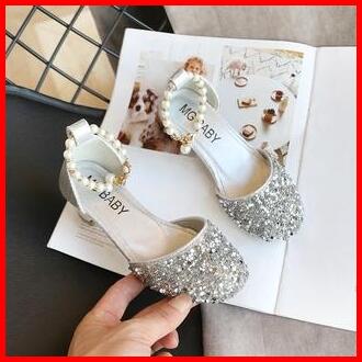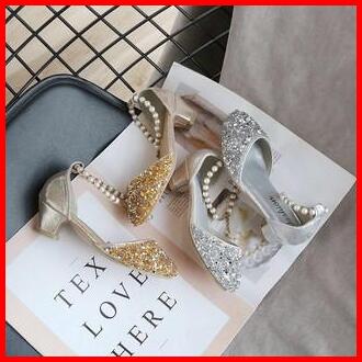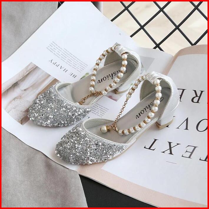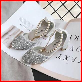 Sepatu Import Pesta Anak Bertumit High Heels Putih Silver