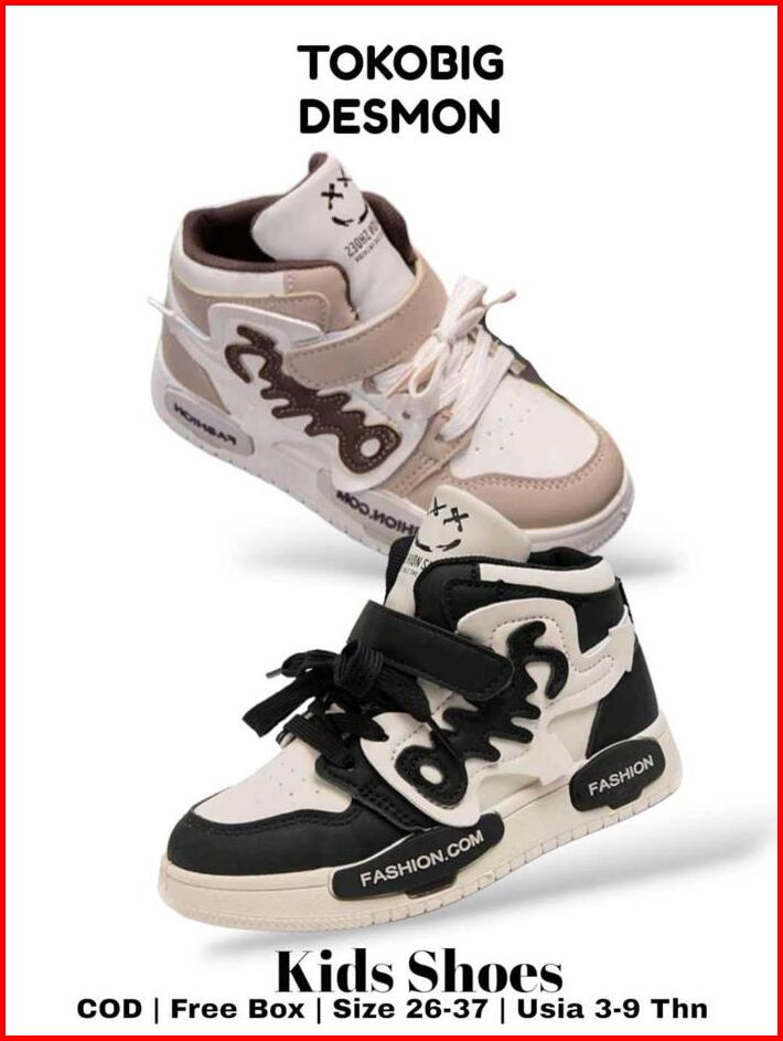 Tokobig Import Shoes Desmon Sepatu Sneaker Kasual Anak Sepatu High Top Import Sepatu Anak Ukuran 26-37 Usia 3-9 Tahun