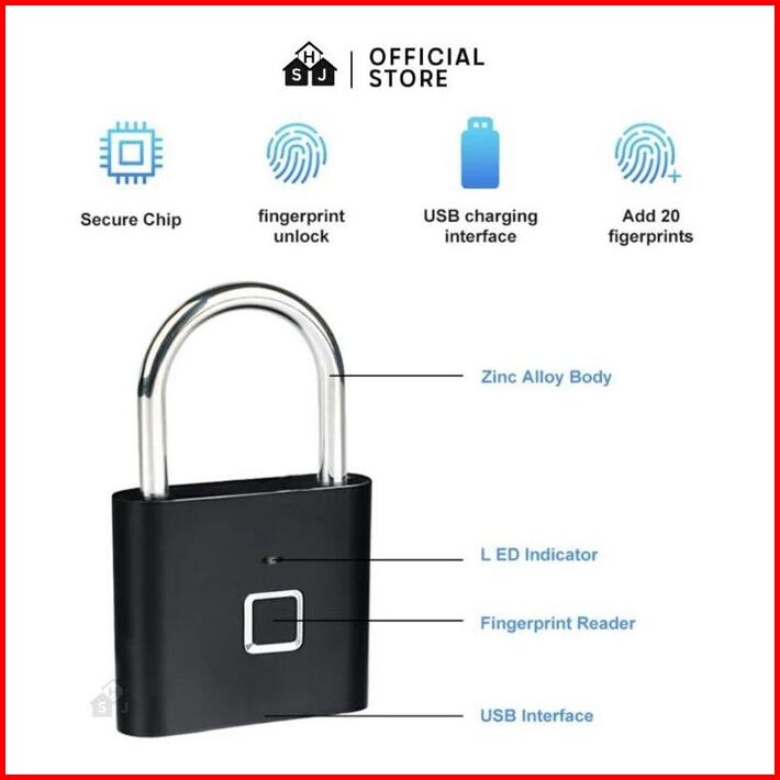 Gembok Fingerprint Sidik Jari Anti Maling Kunci Koper Pagar Pintu Smart Padlock Fingerprint