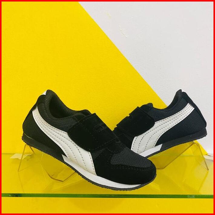 Sepatu Anak Laki Laki Perempuan Umur 3 4 5 6 7 8 9 Tahun Fashion Kids Sepatu Olahraga Tanpa Hak Velcro Hitam Trainer