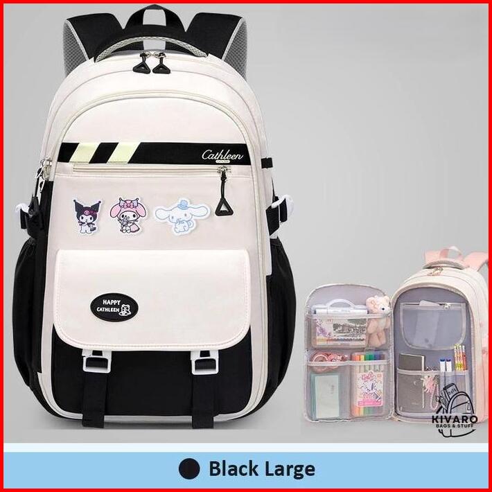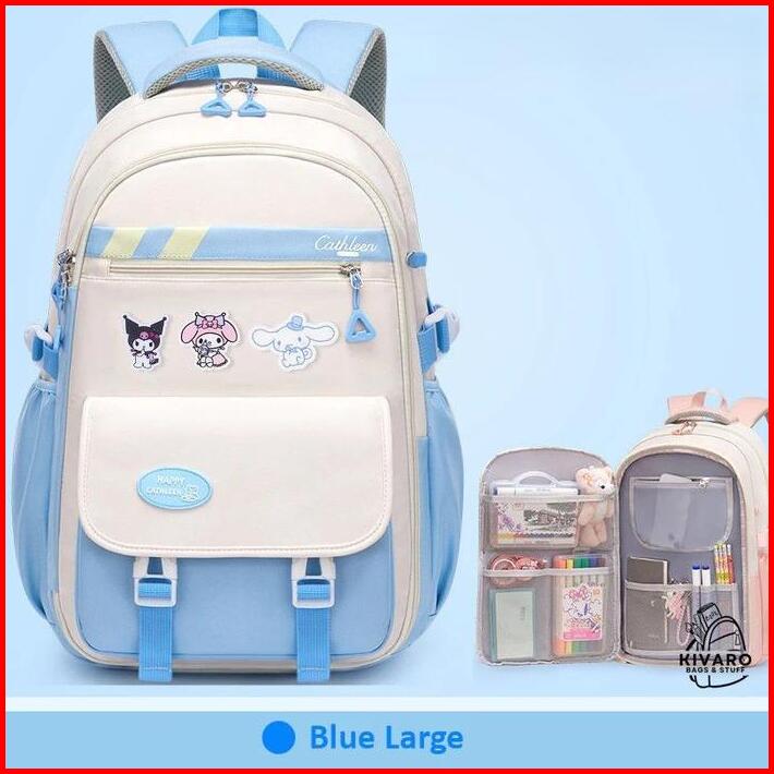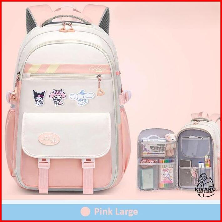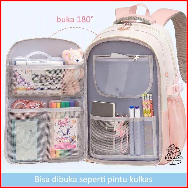 Tas Sekolah Anak Perempuan Ringan Backpack Model Kulkas Trendy Stylish Bahan Kanvas Dinir Fashion
