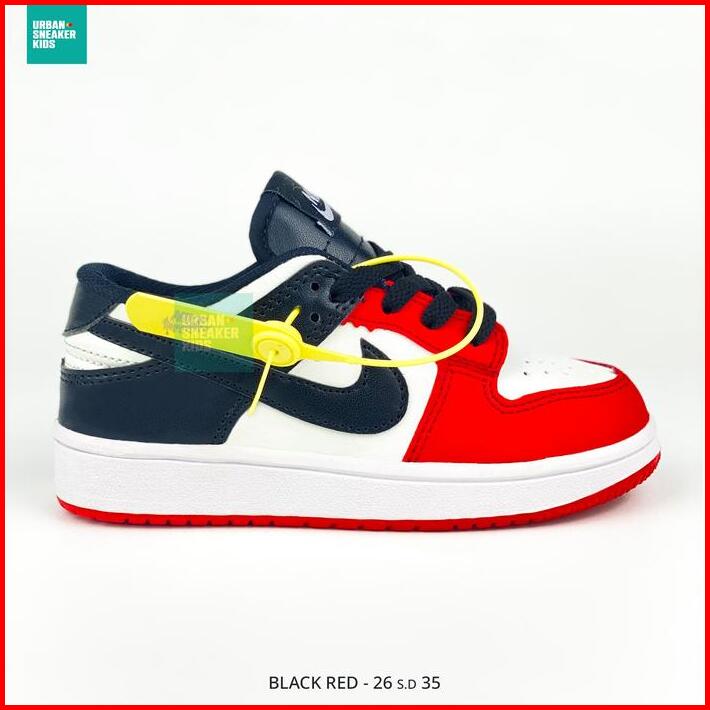 Sneakers Dunk Anak Laki Laki Sepatu Import Hitam Merah Usia 3-10 Tahun