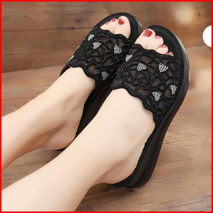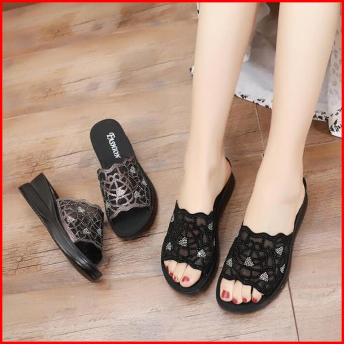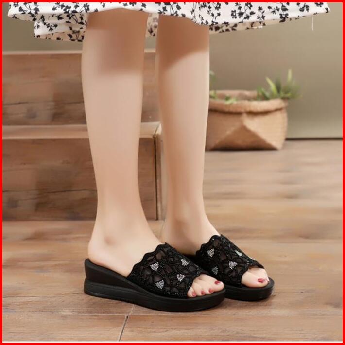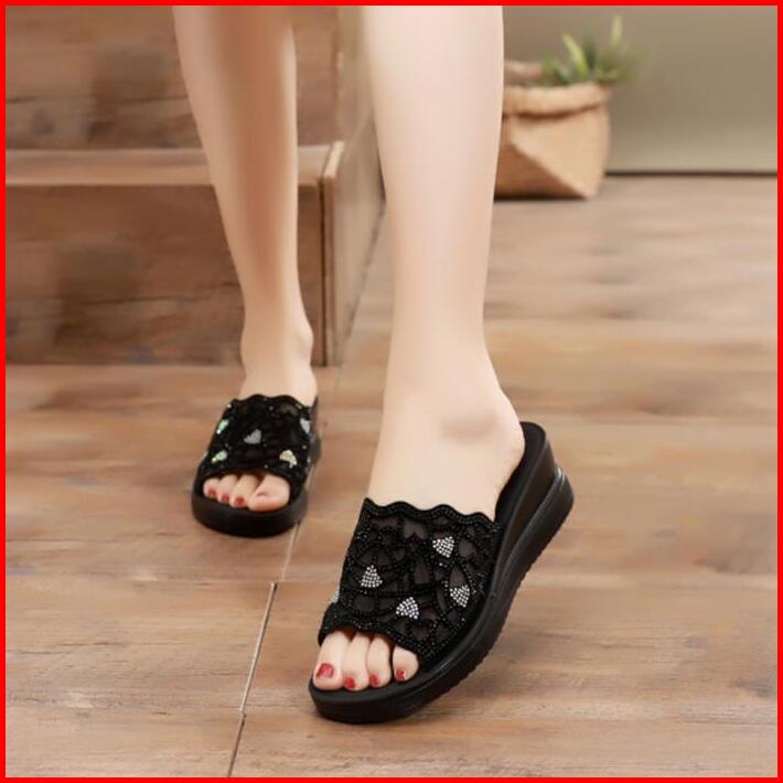 Sandal Wedges Wanita Terbaru Sendal Kondangan Wedge Cewek Karet