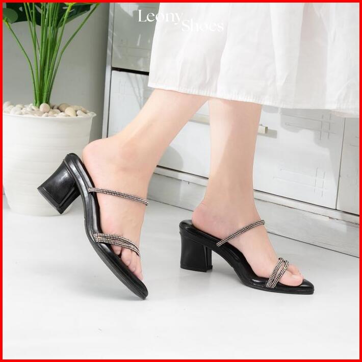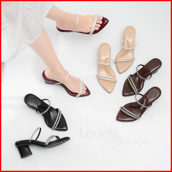 Leony Giselle Sandal Heels Wanita 5 Cm Sendal Hak Tinggi Cewe Tali Diamond