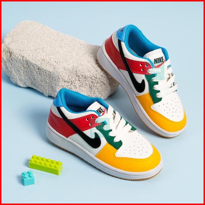 Sepatu Anak Laki Laki Sneakers Dunk Import Biru Merah Kuning
