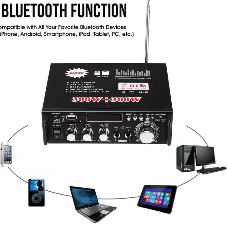 NOIR Amplifier BT-298A Stereo Audio Bluetooth Karaoke Home Theater FM Radio 600W
