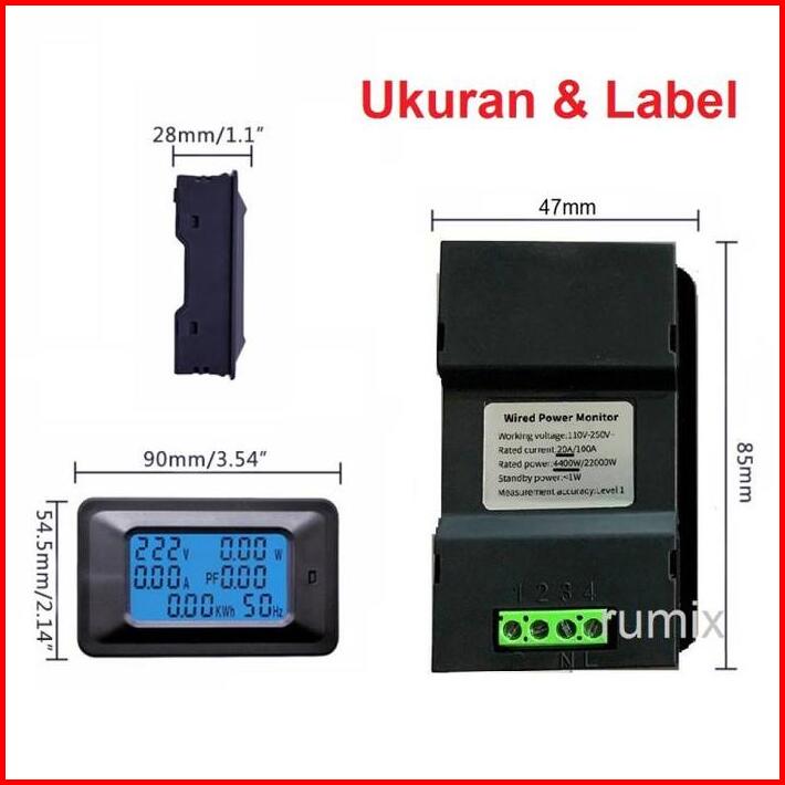 Watt Kwh Meter Power Monitor Daya Digital 20a 100a Wattmeter 6 In 1 Ac