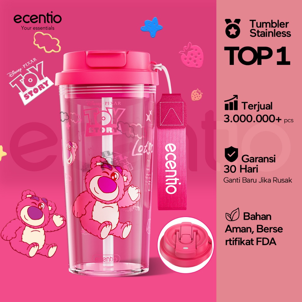 [Mall] ecentio botol minum aesthetic 580ml anak perempuan disney collaborative edition with straw