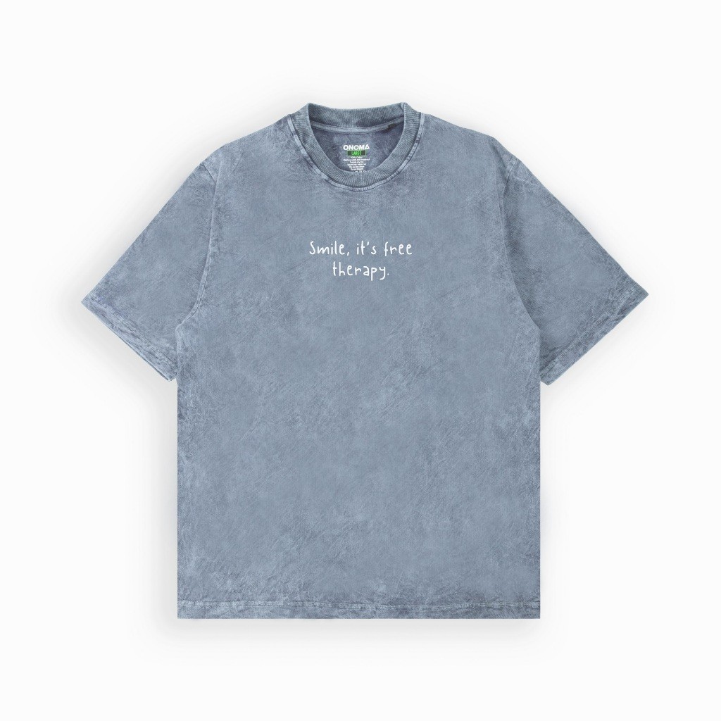 Onoma Katun Denim - Oversized Tshirt Wash Smile Is Free Denim - Kaos