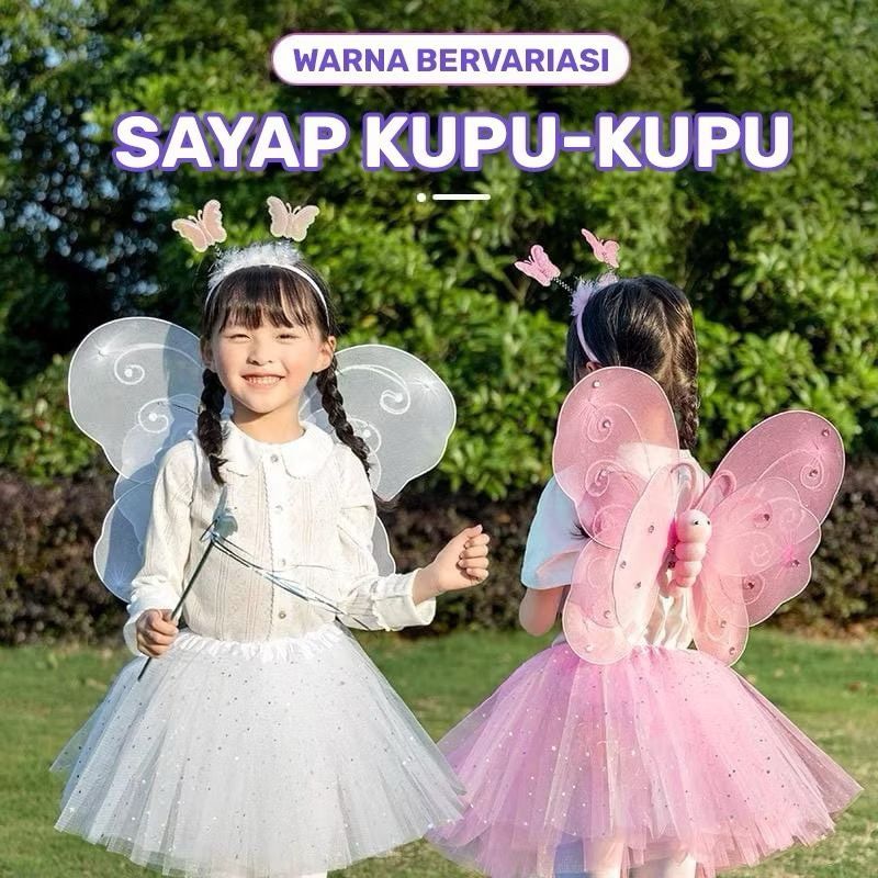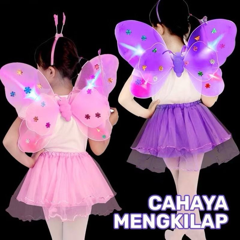 Kostum Sayap Peri Kupu Kupu Anak LED / Kostum Peri / Tongkat Bando Sayap Peri Bidadari Angel Butterfly Wings