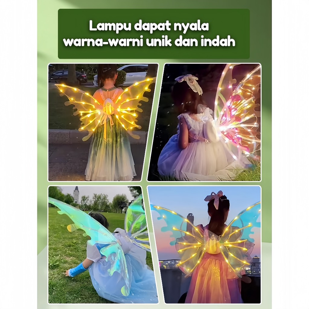 【24H】Anak Kupu-kupu led Simulasi Sayap Malaikat Sayap Peri Bulu Mainan Bercahaya / Kostum Peri / Sayap Peri Bidadari Ang