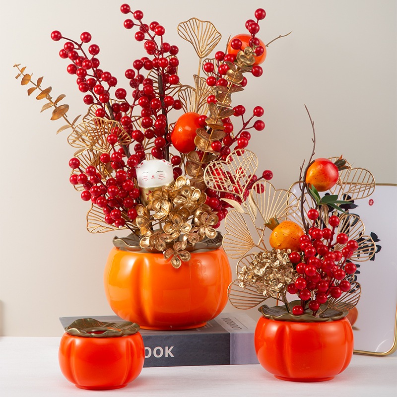 [1 SET] Hiasan Pot Bunga Imlek Set Cherry Blossom Vas Keramik Vase Decoration Hampers Gift Aksesoris Dekorasi Pajangan M