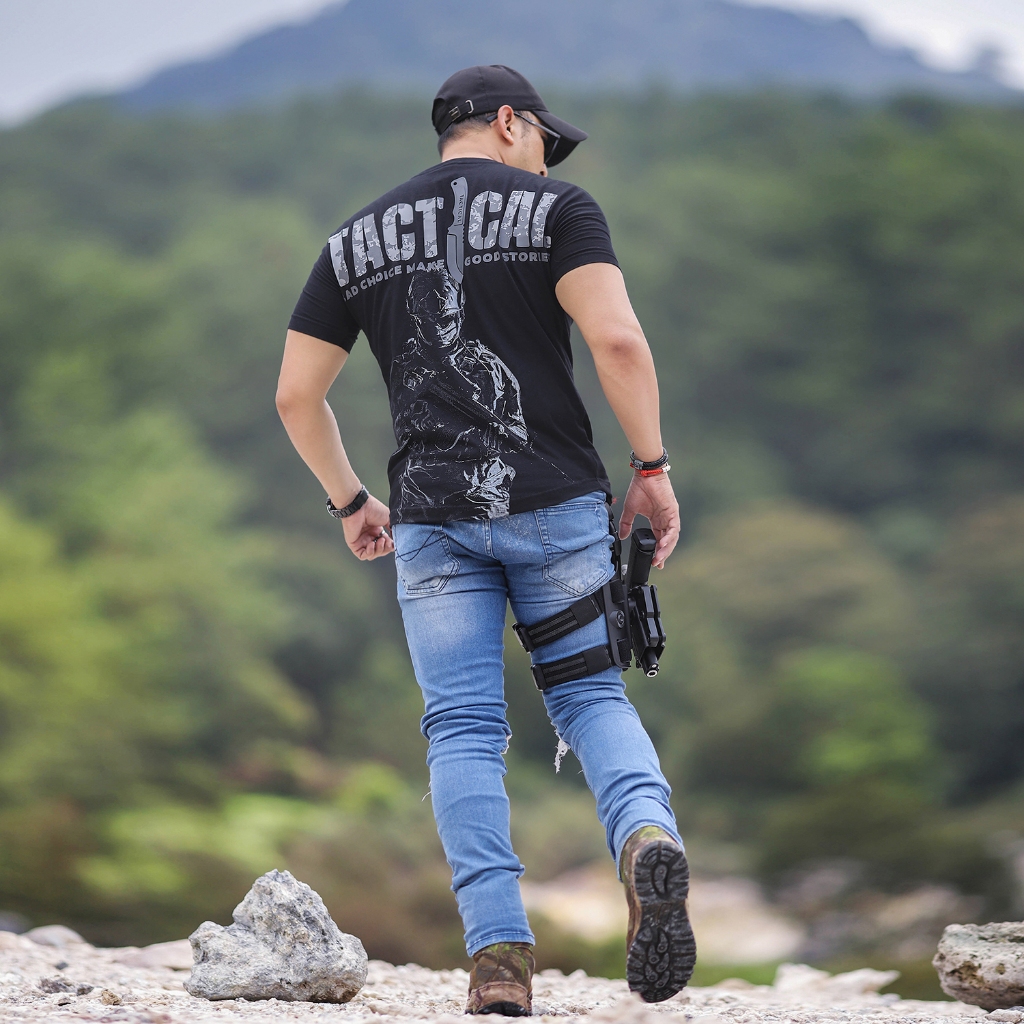 KAOSBOS.ID - Kaos Distro Tactical Lengan Pendek Pria Hitam 24 Hour Tni Polisi