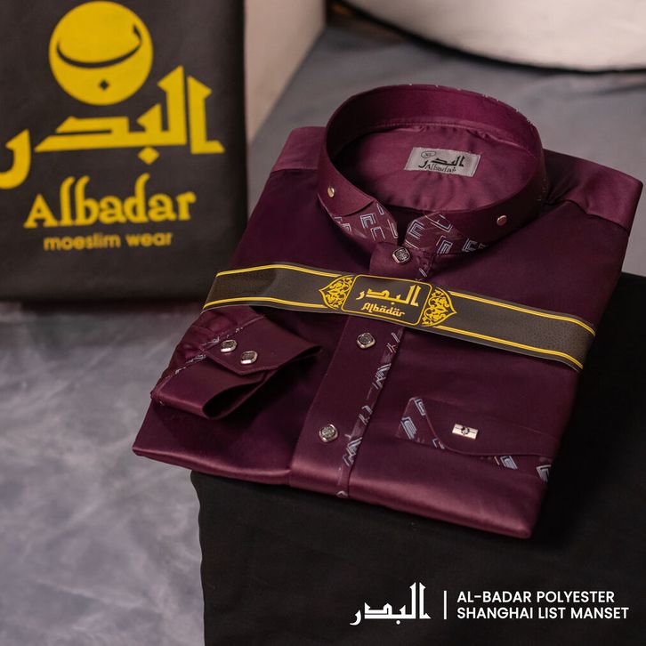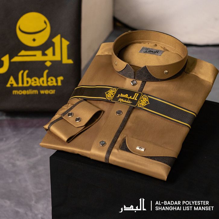 Jubah AlBadar polyester Kerah Shanghai New Lis Manset Premium Bahan Adem dan Mengkilat