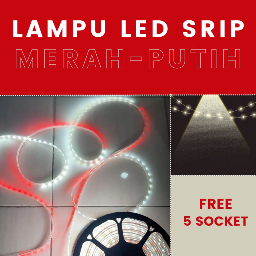 Lampu LED 3528 2835 220V + ADAPTOR OUTDOOR | Perayaan Kemerdekaan 17 Agustus ke 80: Terang Stabil, Varian Merah Putih |