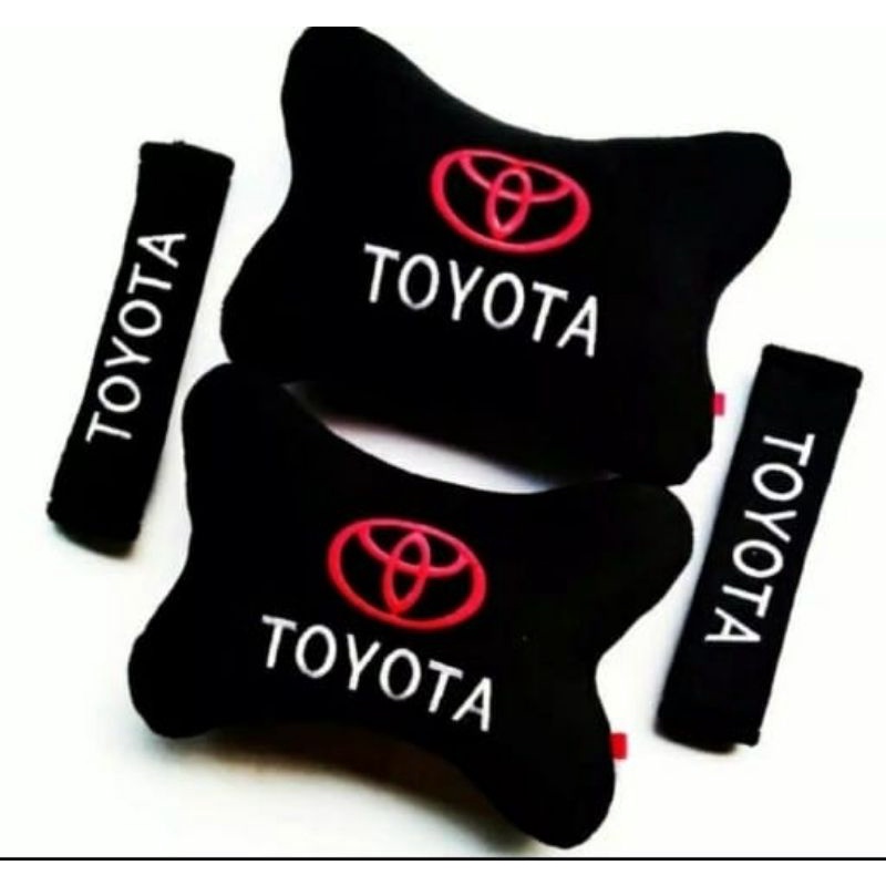 BANTAL MOBIL SATU SET MERK TOYOTA BANTAL MOBIL MURAH + 2 PCS SARUNG SEATBELT BANTAL FULL ISI DAKRON BANTAL LEHER MOBIL M