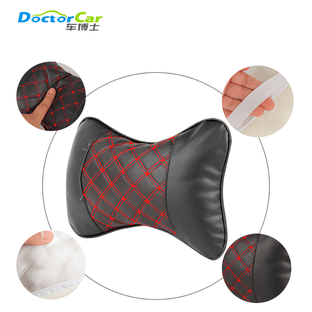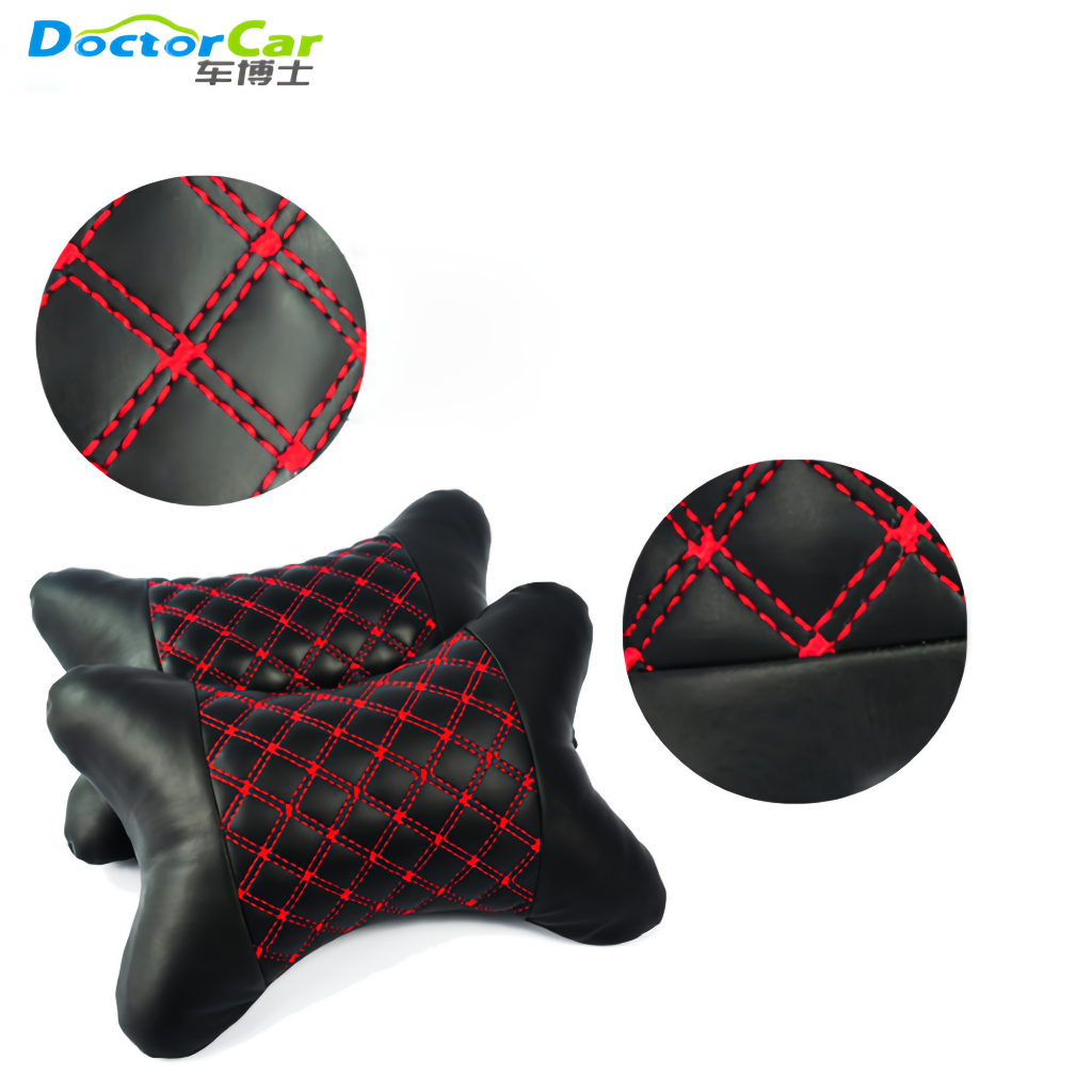 2 Pcs Bantal Mobil Headrest Bantal Leher Leather Neck Back Car Pillow Car