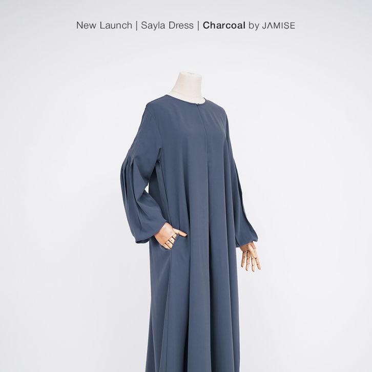 jamise sayla dress abaya simple lengan puff karet