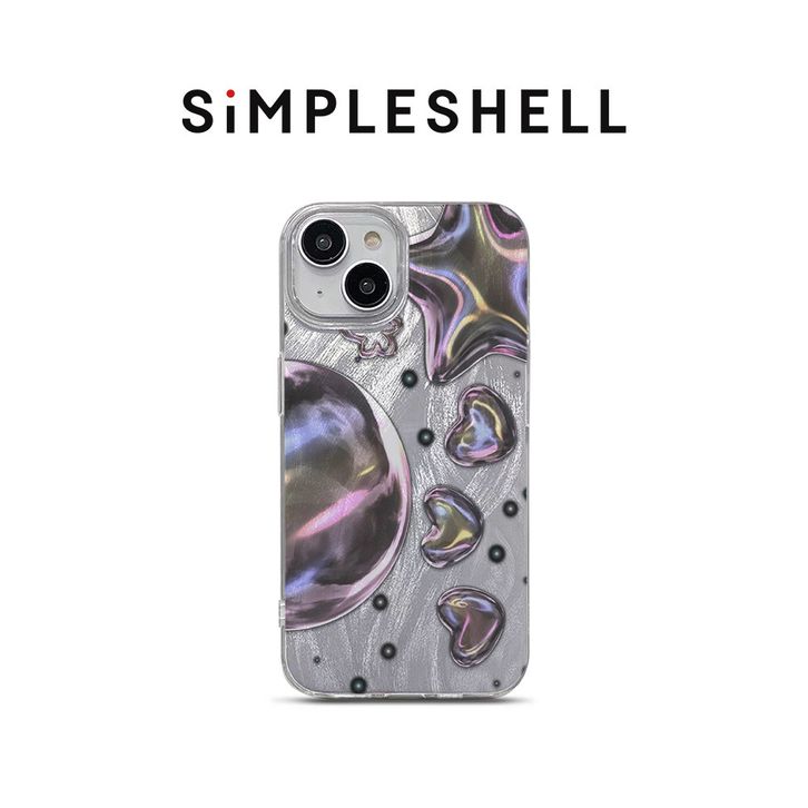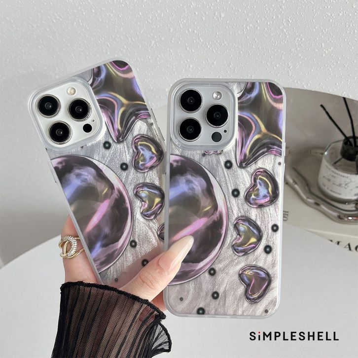 Casing iPhone 11 13 12 14 15 16 Plus Pro Max X XR XS Max 11Pro 11Pro Max 7 8 Plus SE Case Hologram Metal Bubbles