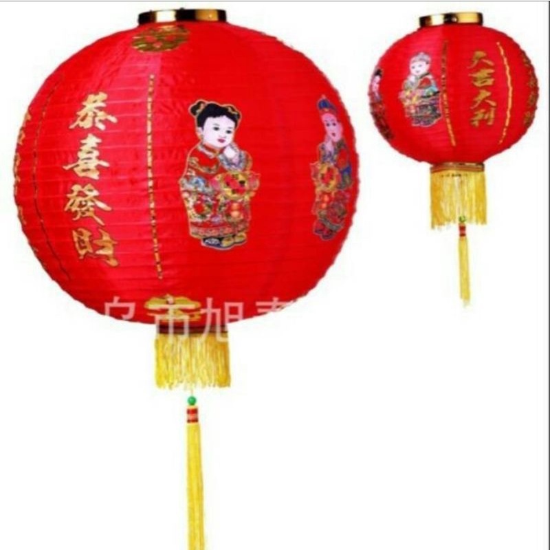 Lampion Imlek Merah Motif Cici Koko Ukuran 18 Inch Sampai 24 Inch