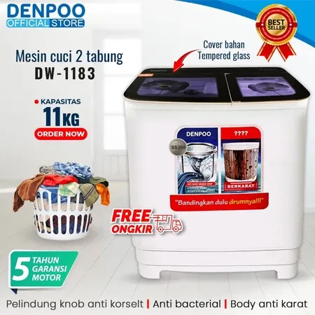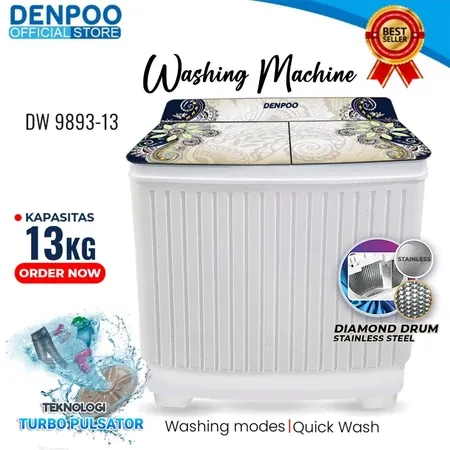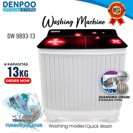 MESIN CUCI DENPOO 2 TWIN TUB KAPASITAS 13KG 11KG 8KG TOP COVER TEMPERED GLASS MURAH ORIGINAL BEST SELLER